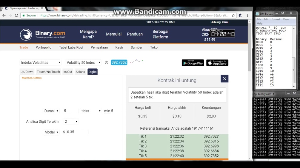 E-book Trading Digit Match in Binary.com